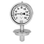 Αέριου, τοπίκα (οριζόντια ή κάθετα),εξ΄ολοκλήρου ανοξείδωτα WIKA τύπος 74, κέλυφος, Φ100mm, σύνδεση υγειινού τύπου, Acc. ± 1 °C στην περιοχή μέτρησης, IP 65, περιοχές : 0 ... 120 & 0 ... 160 °C